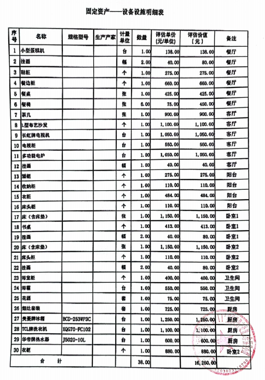 | 固定資產(chǎn) | 設(shè)施設(shè)備 | 詳見附件“設(shè)施設(shè)備明細(xì)表” | ||||||